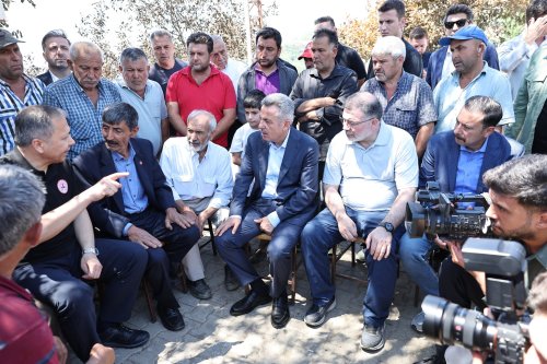İçişleri Bakanı Ali Yerlikaya ve AK Parti İzmir Milletvekili Mahmut Atilla Kaya, Ödemiş’in Tosunlar köyünde yangından etkilenen vatandaşları ziyaret ederek, zarar gören alanlarda incelemelerde bulundu.