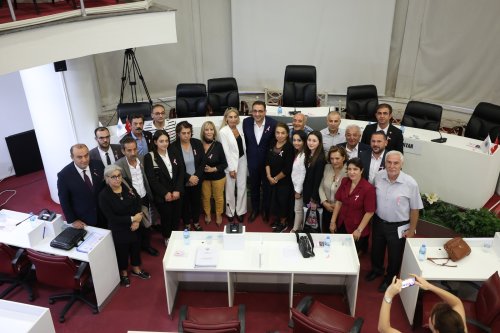 Oturumun sonunda tüm meclis üyelerinin ve Su Elçileri Kanserle Mücadele Derneği yönetiminin katılımıyla meme kanserine dikkat çekmek için fotoğraf çekimi gerçekleştirildi.