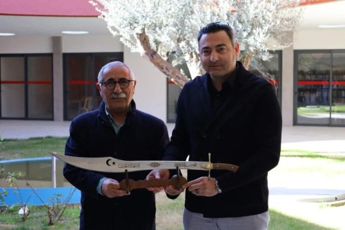 Ziyaret sırasında MHP Balçova İlçe Başkanı Fazıl Şahin, İzmir Bektaşi Dedesi Celal Taş ve Çoşkun Bektaşin’e hediye takdim etti.