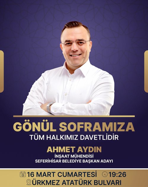 Seferihisar tarihinde ilk defa proje tanıtım toplantısı düzenleyen Seferihisar Belediye Başkan Adayı Ahmet Aydın, gönül sofralarında Seferihisarlı vatandaşlara projelerini anlatacak. Ramazan ayının manevi iklimine uygun bir şekilde Seferihisarlı vatandaşlar bir araya geldiklerini belirten Aydın: “Birlik, beraberlik ve paylaşım duygularının en yoğun yaşandığı Ramazan ayında Seferihisarlı vatandaşlarımızla gönül sofralarında bir arada olup aynı sofrayı paylaşacağız” dedi.