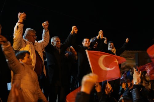 Geçmiş dönem İzmir Büyükşehir Belediye Başkanı Aziz Kocaoğlu da, ekonomik sıkıntılara dikkat çekerek, “Geçinmek mümkün değil. Yerel seçimlerde bu bir sarı kart, bir ikaz olacak. Burada sizlerden Başkan Adayı kardeşim Övünç Demir’e ve meclis üyesi arkadaşlarımıza destek talep ediyorum” dedi. Cumhurbaşkanı Recep Tayyip Erdoğan’ın “Oy yoksa hizmet yok” söylemlerini anımsatan Kocaoğlu, “Yerel yönetimin görevi en mağdur olanın ekmeğini büyütmektir” diye konuştu.