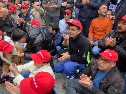 Eylemde kısa bir konuşma yapan Türk-İş İzmir 3. Bölge Başkanı Hayrettin Çakmak ise “Bu dava kutsal dava, bu dava emek davası, ekmek kavgası, seçim kavgası değil. Bir an önce masanın yeniden kurulup bu davayı seçim sonucuna kadar bitirip; davamıza, ekmeğimize, kentimize sahip çıkmak istiyoruz” ifadelerini kullandı.