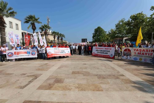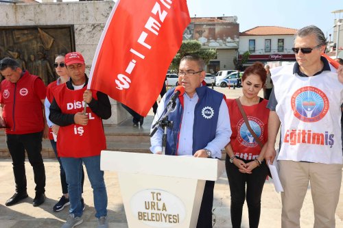 DİSK 4 No'lu Şube Başkanı Aydın Tekin, 2019 yılından sonra Urla Meydanında tekrardan 1 Mayıs kutlaması yapmanın onurunu ve gururunu yaşadıklarını belirterek, “Bizlere bu gururu yaşatan Urla halkına ve Belediye Başkanıma Selçuk Balkan’a teşekkür ederim. 1880’li yılların başlarından bugüne 16 saatlik çalışma saatlerinin 8 saat olması için hafta tatili olması için, sağlık güvencesi hakkı için, emeklilik hakkı için, sendikalaşmak için, güvenceli çalışma hakkı için bu uğurda ikballerini ve hayatlarını kaybeden sınıf yoldaşları saygıyla anıyorum” dedi.