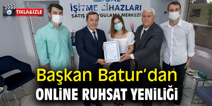 Başkan Batur, Başkan Zekeriya Mutlu’yla birlikte online ruhsat alan esnafları işyerlerinde ziyaret etti. İlk belge Kemeraltı Şarküteri dükkânı açılışında SGK İzmir İl Müdürü Ekrem Gülcemal, İzmir Vergi Dairesi Başkanı Ömer Alanlı ve SGK müdürlerinin de katıldığı törenle verildi. Ardından bir turizm acentesi, işitme cihazı dükkânı ve börekçi dükkânına gidilerek, işyeri sahiplerine belgeleri teslim edildi.