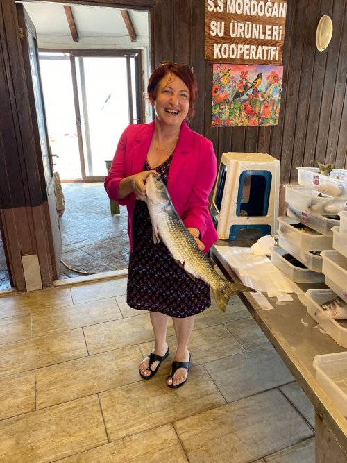 Balıkçılığın ilçe ekonomisinde ne kadar önemli bir yere sahip olduğunu vurgulayan Erdoğan, toplantının ardından Mordoğan Su Ürünleri Kooperatifi’ne üye balıkçıların gün doğmadan çıktıkları av yolculuğunda tuttukları balıkların mezatına katıldı. Tamamıyla Karaburun’a özgü olan ve Ağustos- Ekim arasında en verimli zamanını yaşayan topan kefal ile kameralara poz veren İlkay Girgin Erdoğan, tüm vatandaşları sağlık balık tüketmeleri için Karaburun’a davet etti.