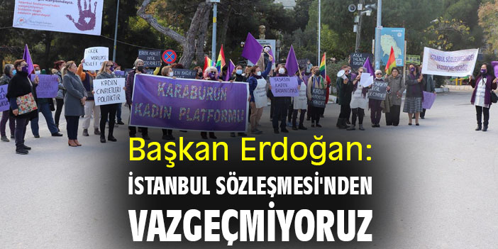 Karaburun'da Kadına Yönelik Şiddete Karşı Uluslararası Mücadele Günü dolayısıyla gerçekleşen etkinlikleri paylaşan Başkan Erdoğan, paylaşımına "İstanbul Sözleşmesi'nden vazgeçmiyoruz" notunu düştü.