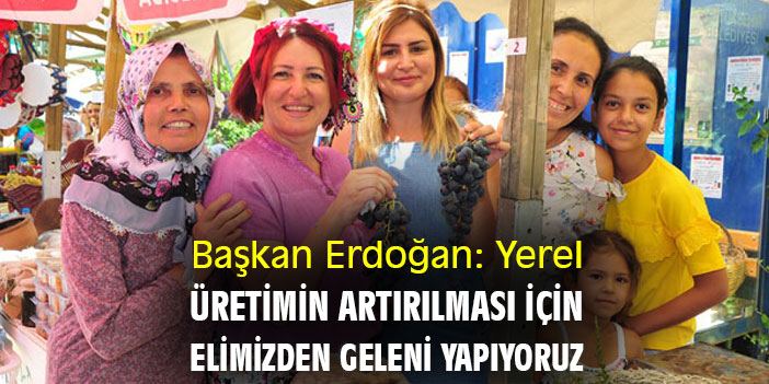 Yerli Malı Haftası dolayısıyla bir mesaj yayınlayan Başkan Erdoğan, mesajında "İlçemizde üretimimizin, çiftçimizin yanında olarak yerel ürünlerin üretiminin artırılması için elimizden geleni yapıyoruz, yapacağız... Çünkü yerli malı, yurdun malı..." dedi.