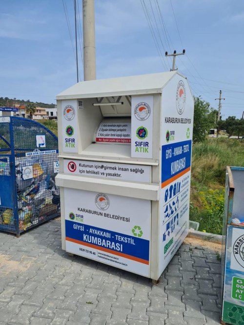Başkan Erdoğan, açıklamasında "Dünyamız her geçen gün daha fazla kirleniyor. Bu durum yaşam alanlarımızın ve ekosistemin tehlikeye girmesine sebep oluyor. Doğamız ve geleceğimiz için Karaburun Belediyesi olarak ilçemize atıkların türlerine göre ayrı birikimlerinin sağlanması ve geri dönüşüme kazandırılabilmesi için hazırladığımız Mobil Atık Getirme Merkezi, Giysi, Ayakkabı ve Tekstil Kumbaralarını ilçemize yerleştirdik. Evinizde oluşan geri dönüştürülebilir atıklarınızı diğer atıklarınızdan ayrı biriktirerek, bu atıkları belediyemiz tarafından yerleştirilen geri dönüşüm konteynerlerine bırakabilirsiniz. Gelecek nesillere daha temiz bir dünya bırakmak için atıkları geri dönüştürerek doğamıza katkı sağlayalım." ifadelerine yer verdi.