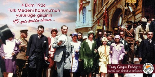 Medya Ege- Karaburun Belediye Başkanı İlkay Girgin Erdoğan, Türkiye Büyük Millet Meclisi (TBMM) tarafından 17 Şubat 1926 tarihinde kabul edilen ve 4 Ekim 1926'da yürürlüğe giren Türk Medeni Kanunu'nun yürürlüğe girişinin 95. yılını, paylaştığı mesaj ile kutladı.