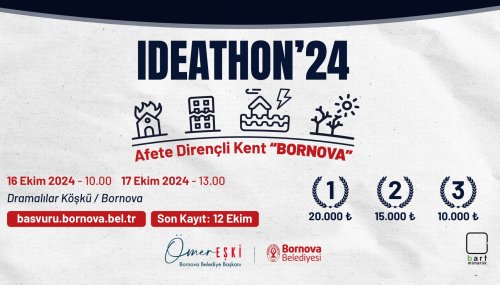 16-17 Ekim 2024 tarihlerinde Dramalılar Köşkü’nde gerçekleşecek etkinlikte, katılımcılar afetlere karşı dirençli bir kent oluşturmak için yenilikçi projeler geliştirecek. Başvurular, 12 Ekim'e kadar basvuru.bornova.bel.tr adresinden kabul edilecek.