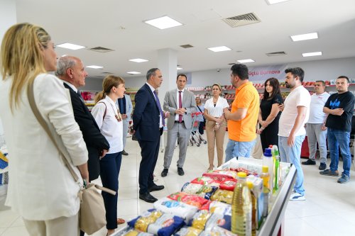 Ziyaretin son durağı, Bornova Belediyesi'nin ihtiyaç sahibi vatandaşlara kartlarına yüklenen bakiyelerle özgürce alışveriş imkanı sunduğu 9 Kent Market Şubesi’nden biri olan Doğanlar’daki Vedat Dalokay Kent Market Şubesi oldu. Lefkoşa Belediye Başkanı’na Türkiye’ye örnek olan bu sosyal belediyecilik uygulaması hakkında bilgi verildi.