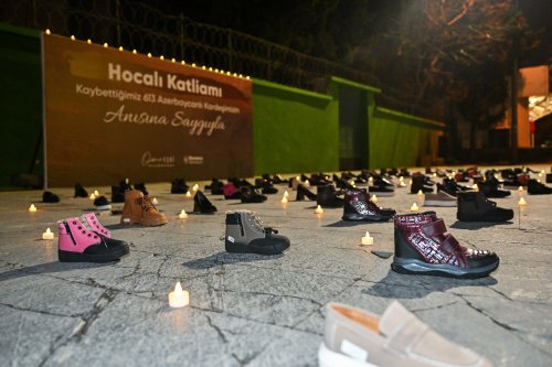 Gündüz saatlerinde Karacaoğlan Mahallesi'ndeki Azerbaycan Dostluk Parkı’nda başlayan anma programı, akşam saatlerinde Bornova Cumhuriyet Meydanı’nda devam etti. Katliamı dünyaya anlatan İranlı foto muhabiri Reza’nın Dostluk Parkı’ndaki “Yaralı Ruhlar” adlı sergisi büyük ilgi görürken, akşam düzenlenen anma etkinliğinde, katliamda hayatını kaybeden 613 kişiyi temsilen 613 çift ayakkabı sergilendi. Alana yerleştirilen mumlar ise karanlıkta bir ışık gibi parlayarak Hocalı’nın unutulmaması gerektiğini hatırlattı.