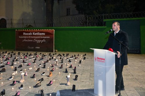 Karabağ Savaşı sırasında 26 Şubat 1992’de Azerbaycan’ın Hocalı kasabasında Ermenistan’a bağlı kuvvetler tarafından katledilen 613 Azerbaycanlı sivil, katliamın 33. yılında Bornova Belediyesi tarafından düzenlenen iki ayrı törenle anıldı.