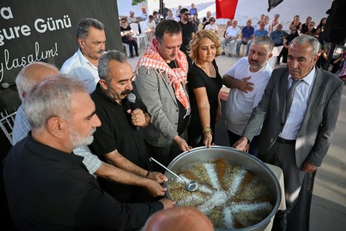 Türk halk müziği sanatçısı Muharrem Temiz’in bağlaması eşliğinde seslendirdiği türküler ise alandaki yüzlerce yurttaşa duygu dolu anlar yaşattı. Aynı zamanda Alevi Kültür Dernekleri Genel Başkan Yardımcısı olan Alevi Dedesi Veli Zengin’in duası eşliğinde sahnede hep birlikte aşure karıldı.