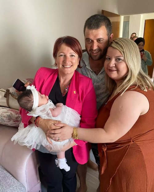 Cansın Masal'ın bebek mevlidine katılarak yeni doğan bebek bohçası hediye eden Karaburun Belediye Başkanı İlkay Girgin Erdoğan, "Güzel günler göresin çocuk. Sağlıklı, aydınlık ve özgür yarınlar olsun seni bekleyen..." dedi.