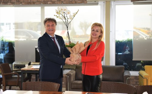 Başkan İduğ, İzmir Gazeteciler Cemiyeti Başkanı Dilek Gappi’yi ziyaret etti.