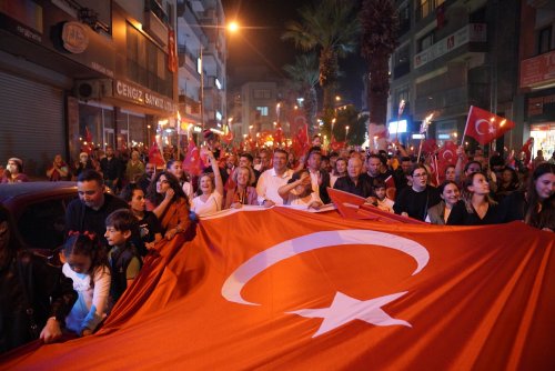 Binlerce Seferihisarlı, ellerinde Türk bayrakları ve meşalelerle Cumhuriyet Bayramı'nı coşkuyla kutladı.