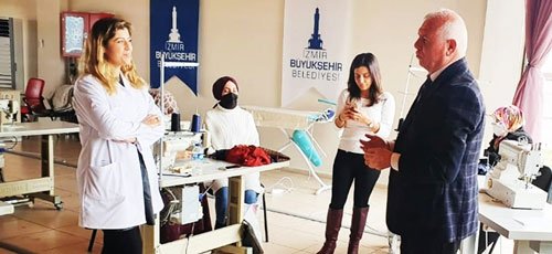Meslek Fabrikası'nın Kemalpaşa Kurs Merkezi'nde kadın kursiyerleri ziyaret eden Kemalpaşa Belediye Başkanı Rıdvan Karakayalı, kadın istihdamını arttırmak için çalışmalara devam edeceklerini ifade etti.