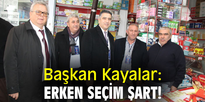 Başkan Kayalar, erken seçim vurgusu yaptığı açıklamasında "Belediye Başkanları Çalıştayımız için Kayseri’deyiz. İlk günümüzü Tomarza ilçemizde geçirdik. Esnaf ziyaretleri yaptık, ilçe başkamızı ziyaret ettik, belediyeyi ziyaret ettik güzel verimli bir çalışma oldu.