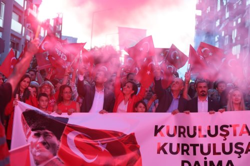 Bayrak dağıtımının ardından Fahrettin Altay Meydanı’nda toplanan kalabalık, ellerinde bayraklar ve meşalelerle, Başkan Kınay, Milletvekili Özlale, İlçe Başkanı Gürboğa, CHP il ve ilçe yöneticileri, geçmiş dönem milletvekilleri, meclis üyeleri, muhtarlarında katılımıyla Üçyol’daki 100. Yıl Uğur Mumcu Parkı’na yürüdü. Yürüyüşe AKUT ve çeşitli sivil toplum kuruluşları da destek verirken, vatandaşlar balkonlardan alkışlarla katılımcılara moral verdi.
