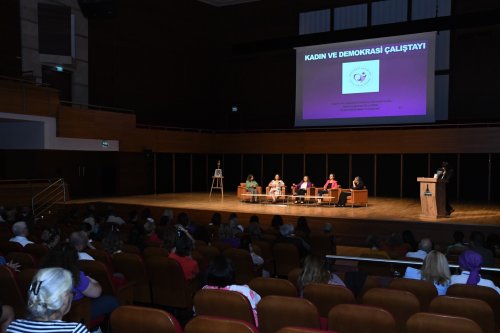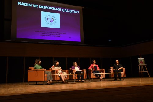 Ahmet Adnan Saygun Sanat Merkezi’nde düzenlenen ve moderatörlüğünü Denizli Milletvekili ve TBMM Başkan Vekili Gülizar Biçer Karaca’nın yaptığı Kadın ve Demokrasi konulu panele Kadın Cinayetlerini Durduracağız Platformu İzmir Temsilcisi Tülin Osmanoğulları, DİSK 8 No’lu Şube Başkanı Deniz Şahin Gümüştekin ve DEM Parti İzmir Milletvekili Burcugül Çubuk ve Karabağlar Belediye Başkanı Helil Kınay konuşmacı olarak katıldı.