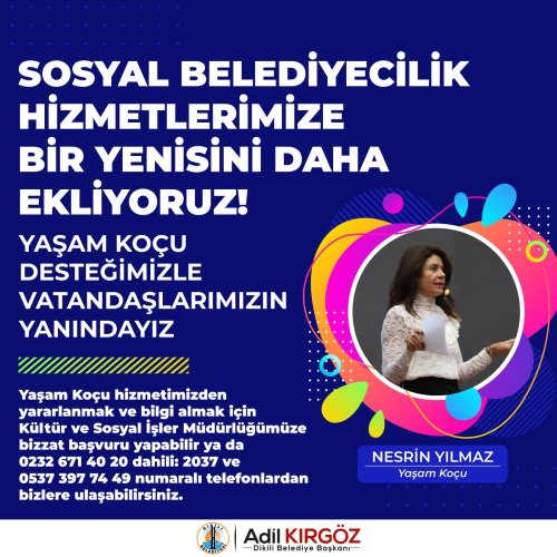 Yaşam Koçluğu desteğiyle ilgili daha fazla bilgi almak ve başvurmak için vatandaşlar; Dikili Belediyesi Kültür ve Sosyal İşler Müdürlüğü’ne bizzat giderek ya da 0232 671 40 20 (Dahili 2037) ve 0537 397 74 49 numaralı telefonlardan iletişime geçebileceğini kaydeden Başkan Kırgöz, sosyal medya hesabından Yaşam Koçluğu desteğiyle ilgili bilgilendirmelerde bulunarak şu ifadelere yer verdi: