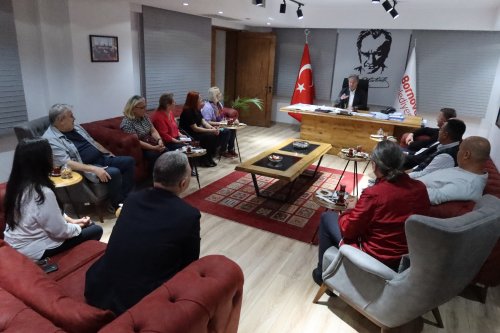 Makedonya Veles Belediye Başkanı Goran Stojanoski ve Makedonya Gümrükler Müdürü Faton Hasani, Makedonya Göçmenleri Derneği Genel Başkanı Kadri Altınkalp Bornova Belediye Başkanı Dr. İduğ'u ziyaret etti