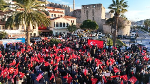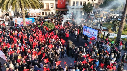 Çeşme CHP Örgütü’nü ve Çeşmelileri arkasına alıp meydana toplanan binlerce insanla birlikte tepki vererek PM’yi uyarıyor.
