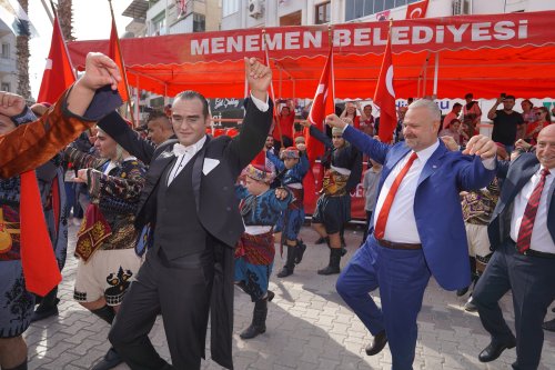 Atatürk Caddesi’nde düzenlenen Resmigeçit Töreni’ne Menemen Kaymakamı Fatih Yılmaz, Menemen Belediye Başkanı Aydın Pehlivan, Menemen Garnizon Komutanı Topçu Albay Zekeriya Tosun, siyasi parti temsilcileri, kamu kurumları ve sivil toplum örgütleri temsilcileri, belediye meclis üyeleri, muhtarlar, gaziler, şehit yakınları ve 7'den 77'ye çok sayıda vatandaş katıldı. Saygı duruşu ve İstiklal Marşı ile başlayan tören, Menemen Kaymakamı Fatih Yılmaz’ın günün anlam ve önemi üzerine yaptığı konuşma ile devam etti. Protokolün halkın bayramının kutlanmasının ardından, İlçe Gençlik Spor Müdürlüğü’nün düzenlediği Gençlik Koşusu’nda dereceye giren öğrencilere teşekkür belgesi ve çeşitli ödüller verildi.