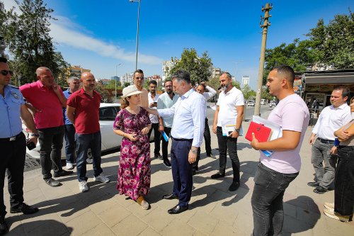 Bayraklı sokaklarını gezerek, alanda çalışmalarını sürdüren Bayraklı Belediye Başkanı Serdar Sandal, İzmir Büyükşehir Belediyesi Park ve Bahçeler Daire Başkanı Erhan Önen, Fen İşleri Daire Başkanı Hamdi Ziya Aydın, Merkez Bölge Yol İşleri Şube Müdürü Mustafa Kapı ve ilgili bürokratlarla Manavkuyu ve Adalet mahallelerinde incelemelerde bulundu.