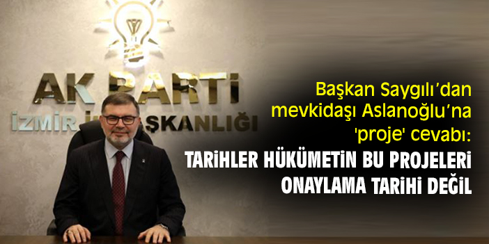 AK Parti İzmir İl Başkanı Bilal Saygılı, Cumhuriyet Halk Partisi (CHP) İzmir İl Başkanı Şenol Aslanoğlu’nun sosyal medya hesabından İzmir Büyükşehir Belediyesi projelerinin hükümet tarafından geciktirildiğini iddia ettiği tarihler ile ilgili, "Bu tarihler, hükümetin bu projeleri onaylama tarihi değil; 'yerim dar, yenim dar' diye diye çıkmaza sürükledikleri işler için ihtiyaç duydukları finansman desteklerine ilişkin tarihler. Sayın mevkidaşım; belediye başkanları, Soyer’in teşekkür ettiği, onaylanan kredilerin nerede, nasıl ve ne kadar zamanda kullanılacağını iyi takip etmeli. Etmeli ki; tablolarını, projelerinin takvimlerini, neyi bitirip bitirmediklerini doğru yapabilsin’" diye karşılık verdi.