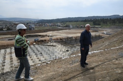Atatürk Gençlik ve Spor Merkezi'ni, Cumhuriyetimizin 100. yılını kutlayacağımız 2023'e yetiştirmek için ekiplerin gece gündüz sahada olduğuna dikkat çeken Başkan selvitopu, “Temel seviyesindeki çalışmalar tamamlandıktan sonra proje önümüzdeki günlerde daha da hızlanacak. İzmir Büyükşehir Belediyesi'yle birlikte yaşama geçireceğimiz bu tesis Karabağlar'a değer katacak” diye konuştu. Başkan Selvitopu, futbol sahası tribün temellerini, istinat duvarlarını, spor salonu inşaatını yakından inceledi.
