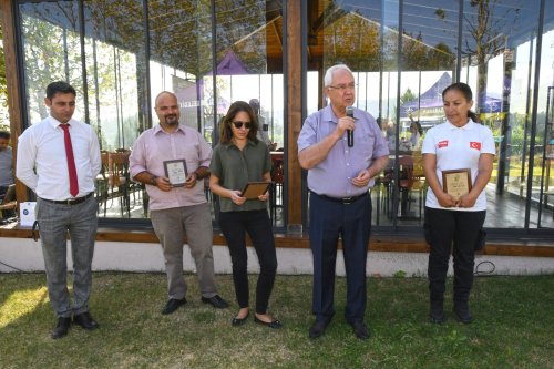 Başkan Selvitopu etkinliğe katılan HAK-TİM Hayvan Arama Kurtarma Derneği Başkanı Sibel Altun, İzmir Büyükşehir Belediyesi Doğal Yaşam Parkı Şube Müdürü Hande Özyoğurtçu Gültekin ve Deniz Koruma Şube Müdürlüğü Mavi Bayrak Koordinasyon Sorumlusu Saygın Yörük’e doğa dostu sertifika verdi.