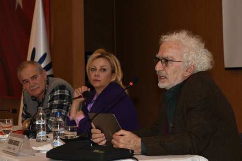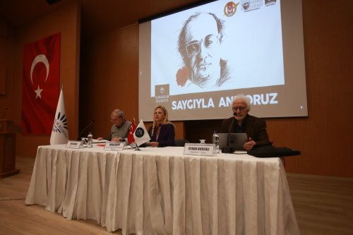Karabağlar Kent Konseyi Başkanı Alev Ağrı, siyasi parti ve sivil toplum kuruluşu temsilcileri, meclis üyeleri, muhtarların da aralarında olduğu çok sayıda vatandaşın izlediği söyleşi, saygı duruşu ve İstiklal Marşı’nın okunmasıyla başladı.