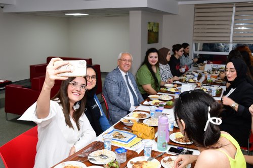 Karabağlar Belediyesi Başkan Yardımcıları ve yurt yöneticileriyle çalışanlarının da katıldığı buluşmada, Başkan Muhittin Selvitopu ve öğrenciler birlikte akşam yemeği yedi.