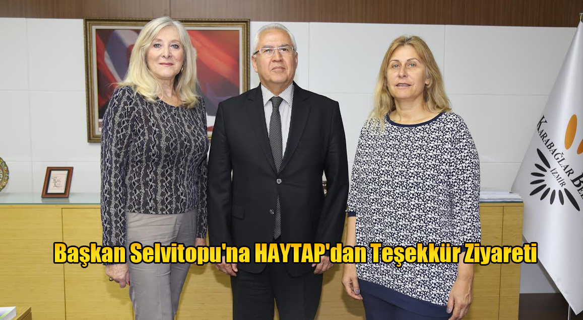 HAYTAP İzmir Temsilcisi Esin Önder ve Basın Sözcüsü Şule Baylan, Karabağlar Belediye Başkanı Muhittin Selvitopu'nu makamında ziyaret etti. Ziyarette, Karabağlar Belediyesi'nin sokak hayvanlarına karşı gösterdiği duyarlılıktan çok memnun olduklarını belirten İzmir Temsilcisi Esin Önder, Karaburun'da ortaklaşa düzenlenen etkinlikte sokak hayvanlarının kısırlaştırılma ve tedavi uygulamaları için Selvitopu ve ekibine teşekkür etti.