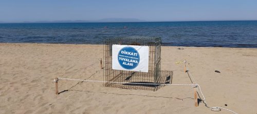 Gece geç saatlerde 57 yumurta bırakılan Caretta Caretta yuvalama alanı Efes Selçuk Belediyesi ve Ekosistem Koruma ve Doğa Severler Derneği iş birliği ile koruma altına alındı.