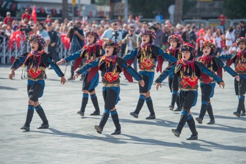 Konuşmaların ardından Cumhuriyet Meydanı’nda resmi geçit törenleri başladı. Vali Elban, Başkan Soyer ve Orgeneral Yeni, resmi geçidi ayakta selamladı. Törende, Türk Silahlı Kuvvetleri’nin kara, deniz ve hava birliklerinden Türk Polis Teşkilatı’na, İzmir Büyükşehir Belediyesi ekiplerinden oda ve meslek kuruluşlarına, okullardan barolara, kooperatiflerden derneklere resmi geçide katılarak Cumhuriyetin 100. yılını selamladı.