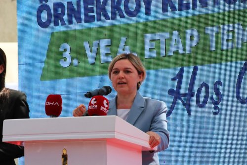 CHP Genel Sekreteri Selin Sayek Böke ise; Örnekköy kentsel dönüşümünün bir projeden fazlası olduğunu ifade ederken projeyi CHP’nin yönetim anlayışıyla bağdaştırdı ve “Bugün sadece Örnekköy’de bir temel atmıyoruz biz. Esasında eşitlikçi, adil, refah içinde üreten bir Türkiye’nin temellerini atıyoruz. Türkiye’de çok ağır ve karanlık bir dönemden geçiyoruz. Bütün haklarımızın yok sayıldığı, haklarımızın tek adam tarafından gasp edildiği tek adam rejimini yaşıyoruz. Öyle ki TÜİK verilerine göre bile gıda enflasyonu yüzde 60’ın üzerine çıkmış. Vatandaş geçinemiyor. Vatandaş çalışırken yoksulluğa mahkum ediliyor. Bütün hakların yeniden tesisi burada attığımız temelde ortaya çıkacak. Bu karanlığın içinde büyük bir umut var. O umut, hakları temeline alan bir sosyal devleti, her alanda yaşatan iktidar anlayışıdır. O umut, bir arabayız ve birlikte yapacağız diyen bir siyaset anlayışıdır. O umut bugün İBB’nin yarın millet ittifakının var edeceği düzenin ta kendisidir. CHP bugünkü karanlığı aşacak 4 ayaklı stratejiyi anlatıyor. ‘Yarın uygulayacağız’ demiyor. Belediyelerinden bugün uyguluyor. Biz güçlendirilmiş parlamenter sistem diyoruz. Demokrasi diyoruz. Bugün de yaşan koşullarını iyileştirmek üzere kent hakkını teslim eden ve barınma hakkını var eden bir anlayış Örnekköy’ü var ediyor. Üreten bir Türkiye diyoruz. Ranta değil, ihtiyaca yatırım yapan bir Türkiye diyoruz. Kamunun güvencesini vatandaşın hakkını korumak için kullanan Türkiye diyoruz. Örneğini de bugün Örnekköy’de görüyoruz. Bunu da kooperatifle, birliktelikle, güç birliğiyle yapıyor. Üçüncüsü de güçlü ve sosyal bir devlet. Vatandasın barınma hakkının olduğu, beslenme hakkının güvenceye alındığı bir Türkiye Süt Kuzu’suyla bunu yapıyoruz. Dördündü ayak sürdürülebilirlik. Bugünkü iktidarın ötekileştirişi, ayrıştırıcı tavrının yerinde bir yarının olduğunu bilecek ve güvencesi olan bir anlayış 4 ayaklı bir kalkınma stratejisini gelecek vaadi olarak anlatmıyoruz. Bugün burada atıyoruz” ifadelerini kullandı.