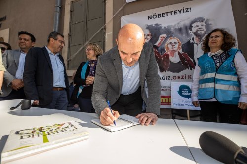 İzmir Büyükşehir Belediye Başkanı Tunç Soyer, Türk Mühendis ve Mimar Odaları Birliği (TMMOB) İzmir İl Koordinasyon Kurulu’nun, Gezi Parkı eylemleriyle ilgili davadan çıkan ceza kararını protesto etmek için başlattığı “Adalet Nöbeti” eylemine katıldı. Mimarlar Odası İzmir Şubesi önündeki nöbette Başkan Tunç Soyer’e sivil toplum kuruluşlarının temsilcileri eşlik etti. Ayrıca Mimarlar Odası İzmir Şubesi Yönetim Kurulu Başkanı İlker Kahraman, İzmir Kent Konseyi Başkanı Prof. Dr. Adnan Oğuz Akyarlı, ilçelerdeki kent konseyi temsilcileri de eylemde yer aldı. Başkan Soyer konuşmasının ardından anı defterine duygu ve düşüncelerini yazdı.