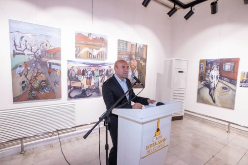 Sanatçı Dürnaz Akşit’in mahalle hayatından ilham alan “Kadıköy’den İzmir’e-Mahallede İnsan” başlıklı resim sergisi İzmir Büyükşehir Belediyesi Çetin Emeç Sanat Galerisi’nde açıldı.
