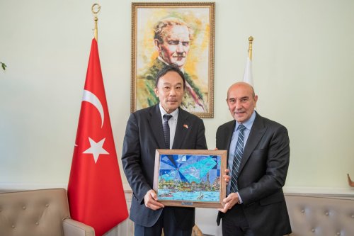 İzmir Büyükşehir Belediye Başkanı Tunç Soyer, Japonya’nın Ankara Büyükelçisi Takahiko Katsumata’yı ağırladı. Başkan Soyer, Japonya ile karşılıklı bir ortak program oluşturulabileceğini söyleyerek güç birliği mesajı verdi.