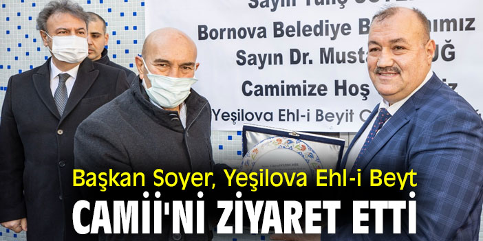 Başkan Soyer, İzmir Büyükşehir Belediyesi tarafından restore edilen Bornova Yeşilova Ehl-i Beyt Camii'ni ziyaret etti. Ziyarete İzmir Büyükşehir Belediyesi Başkan Vekili Mustafa Özuslu, Bornova Belediye Başkanı Mustafa İduğ, Birleşmiş Dünya Azerbaycanlılar Derneği Başkanı ve Iğdırlılar Dernekleri Federasyon Başkanı Gürsel Özdemir, siyasi parti temsilcileri, muhtarlar, meclis üyeleri, bürokratlar ve yurttaşlar da katıldı.