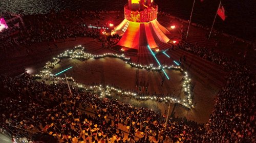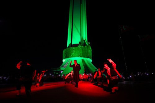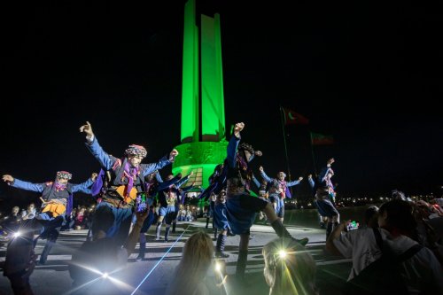 Atatürk, Annesi ve Kadın Hakları Anıtı önüne ulaşan kalabalığı, Karşıyaka Belediyesi Halk Dansları Topluluğu karşıladı. Önce vals gösterisi sunan topluluk, ardından 100. yıl için hazırladıkları koreografiyle Türkiye haritası oluşturdu. Sanatçı Yüksel Ünal’ın duygusal sunumuyla gerçekleşen etkinlikte dansçılar Türkiye’nin dört bir yanına ait dans gösterilerini sergiledi. Büyük bir coşkuyla halaylar çekildi, horon ve kafkas oyunları oynandı. Gösterinin finalindeki zeybek oyunu ise geceye damga vurdu. Yurttaşlar da gösteri boyunca dansçılara eşlik etti.