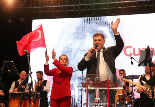 Programın devamında gerçekleşen Aegean Band konseri ise gecenin coşkusunu daha da büyüttü. En güzel şarkılarını Cumhuriyet’in 100. yaşı için söyleyen orkestra, alanı dolduran yurttaşlara unutulmaz bir müzik ziyafeti yaşattı. Cumhuriyet’in 100. yılına yakışan coşku ve heyecan dolu anların yaşandığı akşamda; başta Türkiye Cumhuriyeti’nin kurucusu Ulu Önder Gazi Mustafa Kemal Atatürk olmak üzere milli mücadeleye adını altın harflerle yazdıran kahramanlar saygı ve minnetle anıldı.