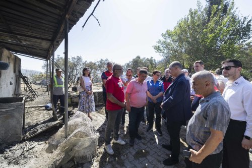 İzmir Büyükşehir Belediye Başkanı Dr. Cemil Tugay, Aliağa Bozköy'de genel sekreter yardımcıları İsmail Mutaf, Çağatay Güç ve Prof. Dr. Pınar Okyay ile İtfaiye Dairesi Başkanı Yaşar Korkmaz'dan bilgi aldı. Başkan Tugay, yanan bölgelerde Aliağa Kaymakamı Zekeriya Güney ve Bozköy Muhtarı Rafi Dönmez ile birlikte incelemelerde de bulundu. Evi tamamen yanan ve kullanılamaz hale gelen Fikri Altınkaya'yı ziyaret eden Tugay, “Gereken neyse yapacağız. Böyle zamanlarda insanların yanında olmak bizim görevimiz. Hepsi yerine konur, önemli olan sizlerin sağlıklı olması, kimsenin yaralanmamış olması. Üzülüyoruz ama en kısa zamanda toparlayacağız. Bunları hep beraber düzelteceğiz” diye konuştu. Ev sahibi Fikri Altınkaya, “Başkanım buraya kadar gelmeniz bile yeter. Çok teşekkür ederiz” dedi.
