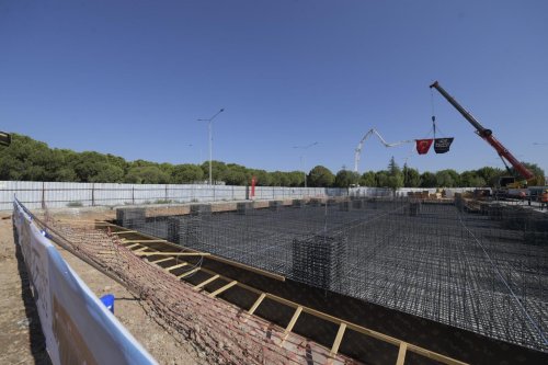 Konuşmaların ardından hizmet binasının temeli atıldı.