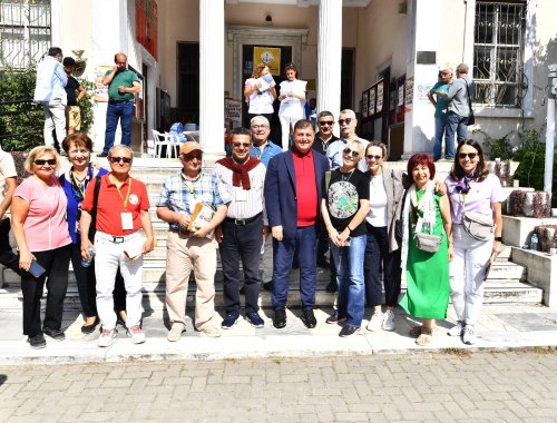 Tugay, okul bahçesinde de meslektaşlarıyla sohbet etti ve fotoğraf çektirdi.