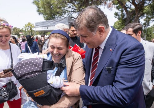 İzmir Büyükşehir Belediye Başkanı Dr. Cemil Tugay, ulu önder Mustafa Kemal Atatürk’ün tüm dünya çocuklarına miras bıraktığı 23 Nisan Ulusal Egemenlik ve Çocuk Bayramı’nda Kültürpark’ta düzenlenen Çocuk Şenliği’ne katıldı. Miniklerin bayramını kutlayan, fotoğraf çektirmek isteyen ailelerle bir araya gelen Başkan Cemil Tugay, “Bu sene 23 Nisan Ulusal Egemenlik ve Çocuk Bayramı ile TBMM’nin açılışının 104’üncü yıl dönümünü kutluyoruz. Umarım önümüzdeki yıllarda bu güzel çocuklar çok daha güzel günler yaşasınlar. Şenliğimiz de her sene bir öncekinden güzel olsun” diye konuştu.
