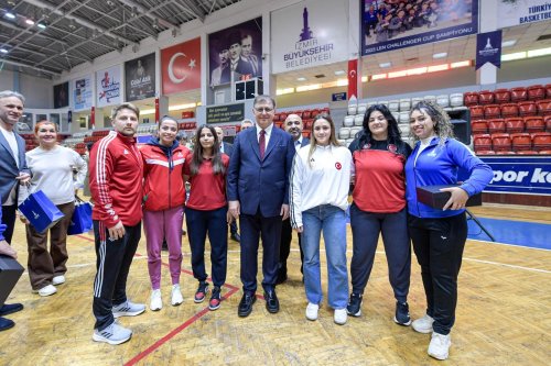 Başkan Tugay, programın sonunda şampiyon olarak bir üst ligde yarışmaya hak kazanan erkek basketbol takımı, kadın ve erkek hentbol takımı, Avrupa Şampiyonu unvanını taşıyan ve yine Avrupa’da final grubuna kalan sutopu kadın takımı, tekerlekli sandalye basketbol takımı, ampute futbol takımlarının sporcuları ve bireysel branşlarda mücadele eden lisanslı sporcularıyla tek tek selamlaştı.